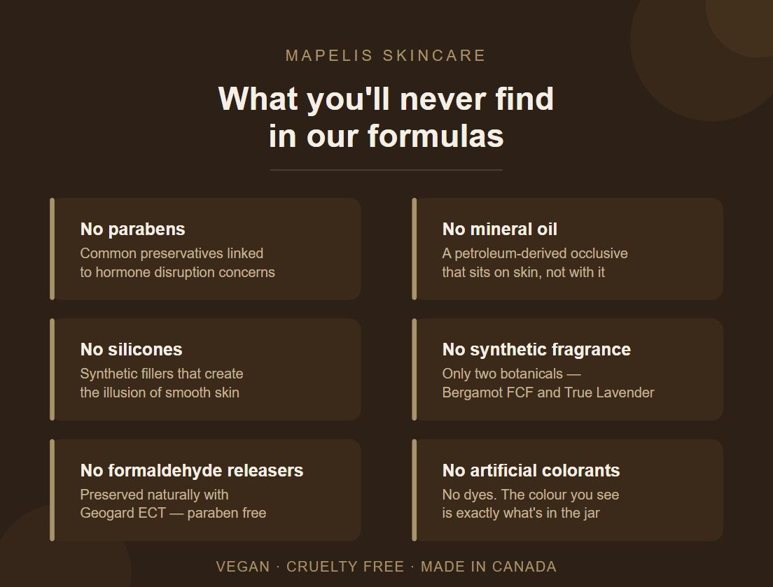 No parabens · No mineral oil · No synthetic fragrance · No sulphates · No petroleum derivatives · Nothing we wouldn't use on our own skin